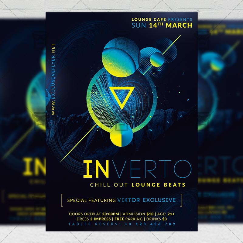 Lounge Beats is an exclusive PSD flyer template for Adobe Photoshop designed by our best graphic designers to facilitate your task in promoting your business. With our readymade Lounge Beats Party flyer in psd format you can invite you customers and guest to your event or to the best Lounge Party Night, Chill Out Fridays, Club Night or Chill Party in their lives.