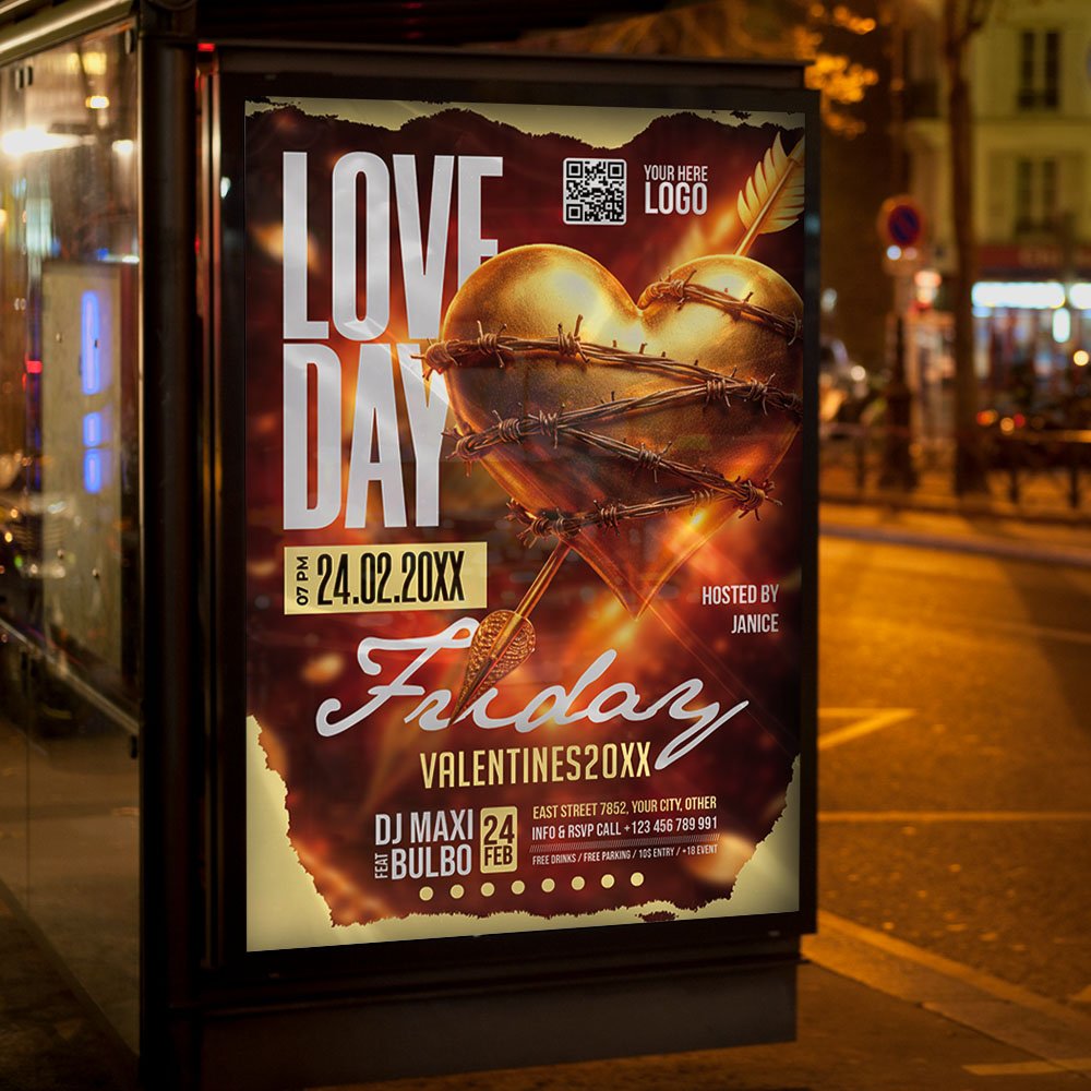 Love Day Friday PSD TemplateStart the weekend with a heartbeat! Our **Love Day Friday PSD Template** is the ultimate design solution for venues looking to capitalize on the most romantic Friday of the year. Whether Valentine’s Day falls on a Friday or you are hosting a “Pre-Valentine” kickoff event, this professional PSD template sets the perfect mood for a high-energy night. It is specifically tailored for nightclubs, cocktail bars, and lounges that want to merge the excitement of the weekend with the spirit of romance. If you want to create an invitation that says “**The Ultimate Love Day Friday Experience**,” “**Friday Night Fever: Love Edition**,” or “**Your Romantic Weekend Starts Here**,” this template is your perfect marketing tool. Expect high-impact visuals featuring stylish 3D hearts, sleek urban textures, and modern typography that screams “Friday Night.” The color palette—a sophisticated blend of neon pinks, deep midnight blues, and classic romantic reds—perfectly captures the vibrant spirit of a **Love Day Friday** celebration. The **Love Day Friday PSD Template** offers a fully flexible and professional layout, allowing you to tailor your message to your specific audience. As a meticulously organized Photoshop file, it allows for seamless customization of every layer. You can quickly update the text to feature your headlining DJ, the date, happy hour specials, or VIP table reservation details. Highlight your event’s unique draws, such as **”Friday Night Love” themed cocktails**, **live electronic music sets**, or **exclusive “Couples’ Night” discounts**. This template is highly adaptable, making it just as effective for a high-octane dance party as it is for a more relaxed, upscale lounge setting. By utilizing this professional-grade flyer, you ensure your promotional materials look polished, expensive, and ready to compete with the best nightlife venues in the city. Designed for the modern digital and physical marketing landscape, the **Love Day Friday PSD Template** is 100% print-ready for high-quality posters and handbills, and it is perfectly optimized for social media platforms. You can effortlessly export and resize your design for Instagram Stories, Facebook ads, and digital signage, ensuring your message reaches the Friday night crowd wherever they are browsing. By choosing this distinctive and professional flyer template, you aren’t just announcing a party; you’re selling an experience, making your “**Love Day Friday**” the essential start to the Valentine’s weekend. Download this premium PSD template today and ensure your Friday night is a sold-out success! — Features of the Love Day Friday PSD Template