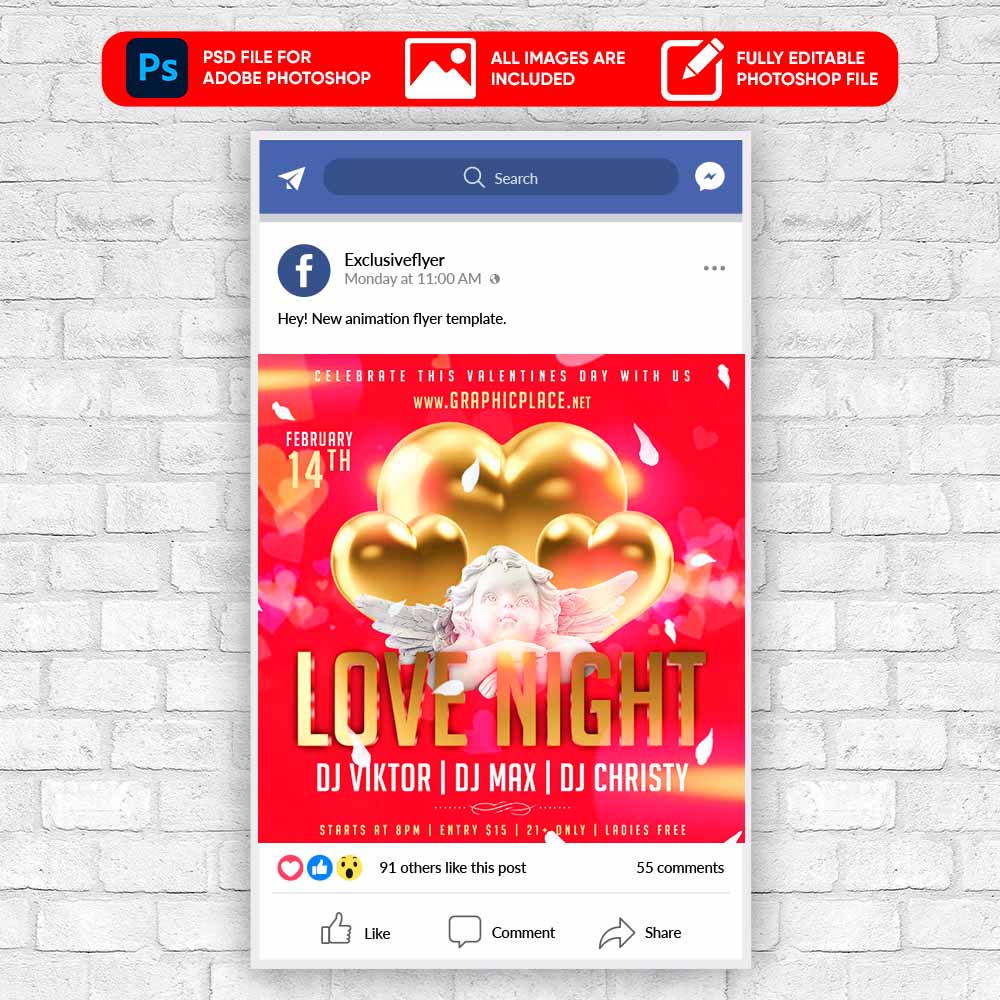 Love Night Animated Flyer PSD Template for Social Media Networks