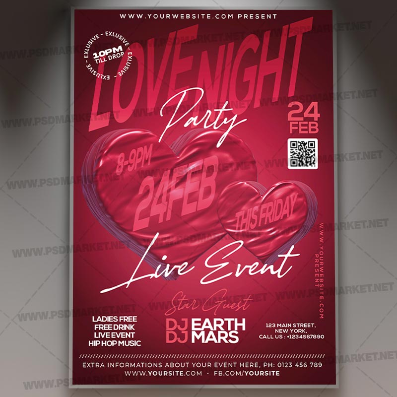 Love Night Party Event Card Printable Template Flyer PSD