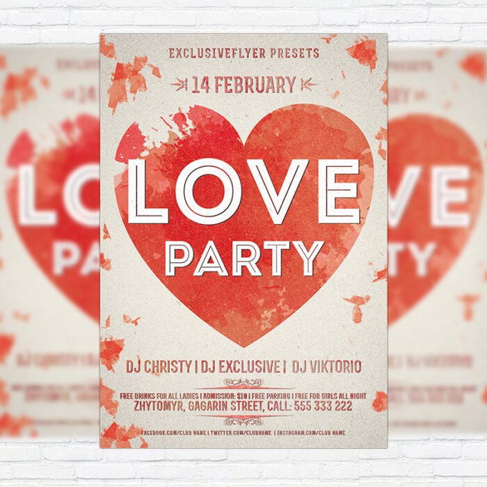 Love Party – Free Club and Party Flyer PSD Template