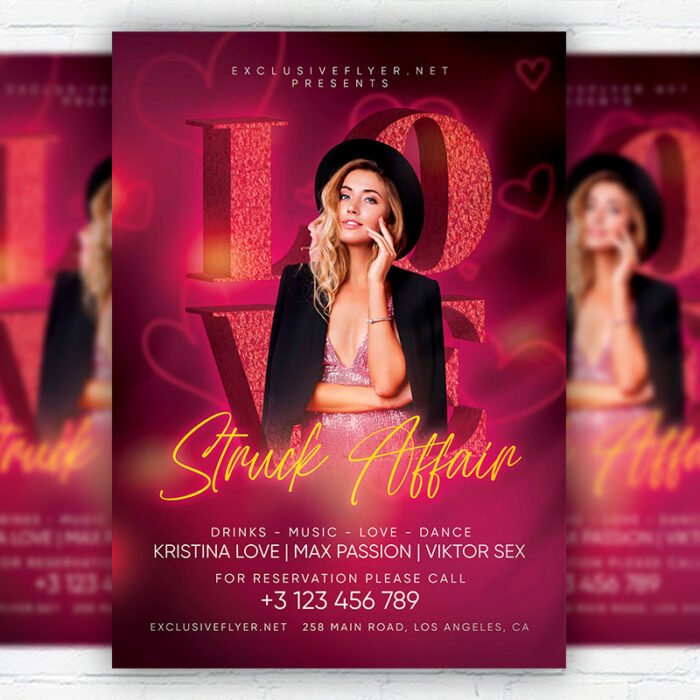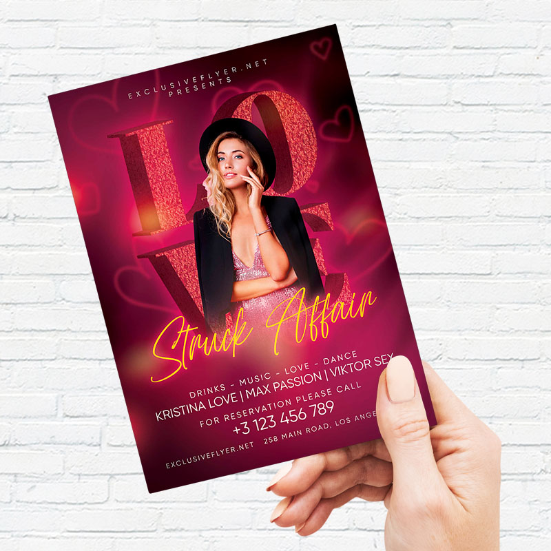 Love Struck Affair A5 Flyer PSD Template for Adobe Photoshop