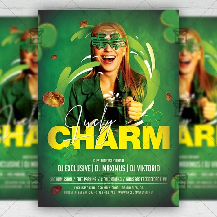 Lucky Charm Event Template an exclusive PSD flyer template for Adobe Photoshop designed by our best graphic designers to facilitate your task in promoting your business. This psd poster/flyer is the best choice for Patrick’s Day party, Saint Paddy’s Green Night, Green Night Out or Saint Patrick’s Celebration Party. With our readymade Game flyer in psd format you can invite you customers and guest to your event with a minimum of efforts and time.