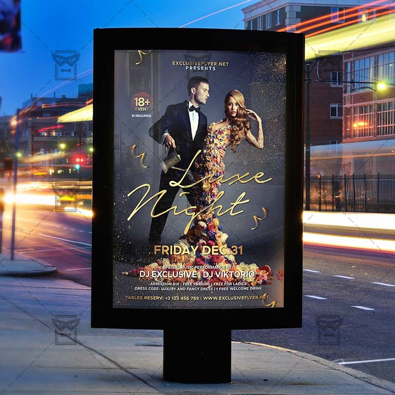 Luxe Nights an exclusive PSD flyer template for Adobe Photoshop designed by our best graphic designers to facilitate your task in promoting your business. With our readymade Club flyer in psd format you can invite you customers and guest to your event or to the best Luxe Party, Luxe Fridays, Luxury Party Night or VIP Night in their lives.