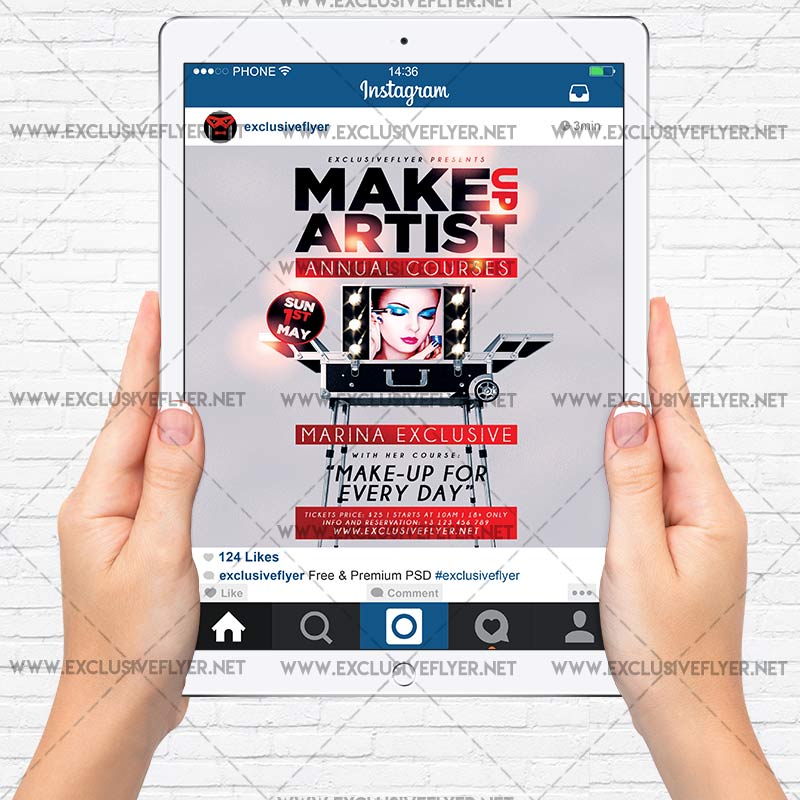 All of us (I mean women) use make-up artist services every day and we decided to help make-up artist to promote their services and make this beautiful PSD flyer template. In the centre of the flyer you can see high quality 3D make-up artist table with mirrow. At the top you can see big black editable tittle text. This grandiose template is 100% editable and you can change all text information and replace all images and decorative elements with your own. So, join us and have a unique exclusive PSD flyer templates every day! Dear customers! – you can also: Customize any flyers or Hire Us to create any unique product. Also, you can get unlimited access to all our templates. You can buy 1 month membership, 3 or 6 months membership or even 1 year membership plan and login on site, choose a design, click the button DOWNLOAD TEMPLATE and it’s yours. No hassle, no checkout! When you paid the template, you can find it in your personal account and of course you’ve got a message to your e-mail (maybe in spam) with link to download. Also, you can find all templates, which you buy, in your personal account! All of our flyers have a very good quality (300DPI). And it means that you just need to download one of them and make the necessary modifications such as replace the elements or choose the colors and start to invite your guests! You can order from us design of Banner Ad, Bi-Fold Brochure, Tri-Fold Brochure, Business Card, Logo, One-Sided Flyer, Two-sided Flyer or Postcard. All you need is to checkout and write us all information on our e-mail or skype. (order now). There are a lot of free flyer templates, free business card templates on our site! Also there are a lot of categories of flyers such as club flyers, seasonal flyers, sport flyers and also business flyers. You have a great choise on our site, so good luck! Don’t forget to follow our Facebook community, our page on Twitter, on Pinterest and on Tumblr and leave comments, cause we work for you! PSD is set up in 1819×2551 dimension. The PSD file is very well organised, with color coded groups and layers named appropriately. Remember, all stock images of models and other people used only for demonstration all charms of the flyer and don’t included in the download!