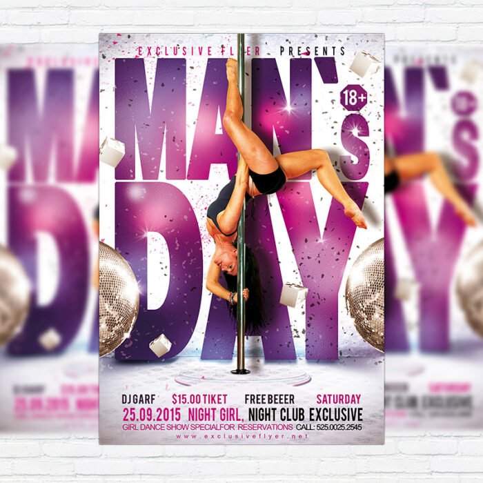The Man`s Day is the exclusive Photoshop PSD flyer template designed by ExclusiveFlyer to promote your Man`s Day. This is a modern, stylish, white flyer and just be used for a Man`s Night or Man`s Party, or other Striptease Party. Dear customers! – you can also: Customize any flyers or Hire Us to create any unique product. Also, you can get unlimited access to all our templates. You can buy 1 month membership, 3 or 6 months membership or even 1 year membership plan and login on site, choose a design, click the button DOWNLOAD TEMPLATE and it’s yours. No hassle, no checkout! When you paid the template, you can find it in your personal account and of course you’ve got a message to your e-mail (maybe in spam) with link to download. Also, you can find all templates, which you buy, in your personal account! All of our flyers have a very good quality (300DPI). And it means that you just need to download one of them and make the necessary modifications such as replace the elements or choose the colors and start to invite your guests! You can order from us design of Banner Ad, Bi-Fold Brochure, Tri-Fold Brochure, Business Card, Logo, One-Sided Flyer, Two-sided Flyer or Postcard. All you need is to checkout and write us all information on our e-mail or skype. (order now). There are a lot of free flyer templates, free business card templates on our site! Also there are a lot of categories of flyers such as club flyers, seasonal flyers, sport flyers and also business flyers. You have a great choise on our site, so good luck! Don’t forget to follow our Facebook community, our page on Twitter, on Pinterest and on Tumblr and leave comments, cause we work for you! PSD is set up in 1275×1875 dimension (4″×6″ with 0,25″ bleed). The PSD file is very well organised, with color coded groups and layers named appropriately. Remember, all stock images of models and other people used only for demonstration all charms of the flyer and don’t included in the download!
