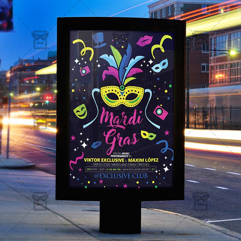 - Mardi Gras Night – Premium Flyer Template + Facebook Cover