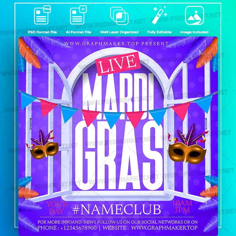 This modern Mardi Gras Social Media Templates is ideal choice for your Mardi Gras flash sales or Mardi Gras product discounts? You are all potential clients who can make great use of these readymade designs.