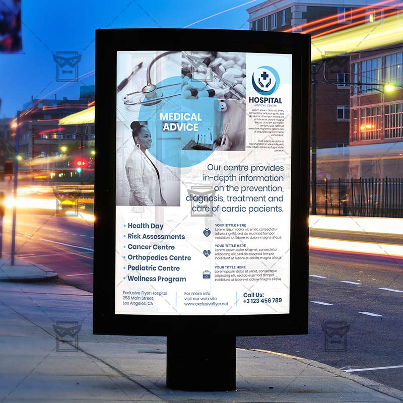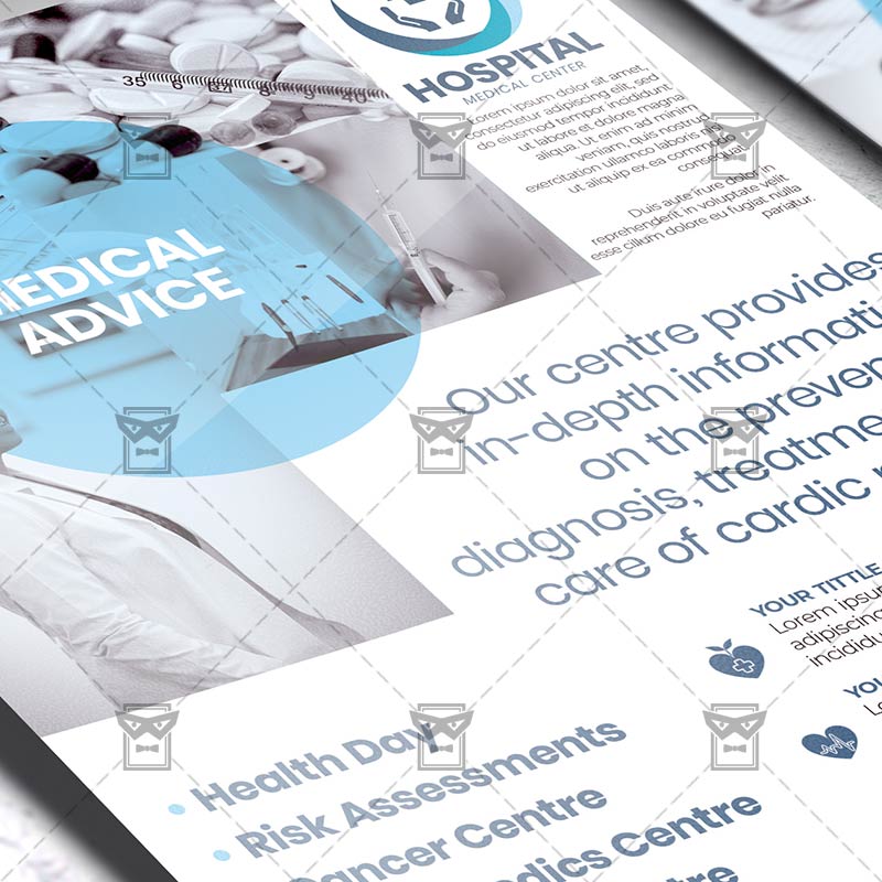 Medical Advice Template an exclusive PSD flyer template for Adobe Photoshop designed by our best graphic designers to facilitate your task in promoting your business. This readymade flyer in psd format is perfect for upscale hospitals, medical centres, laboratories, healthcare centres. With our medical advice templates, we’ve tried to create a design that you can use a wide variety of healthcare businesses. The design is modern, stylish, exclusive, fashionable and most of all, confident.