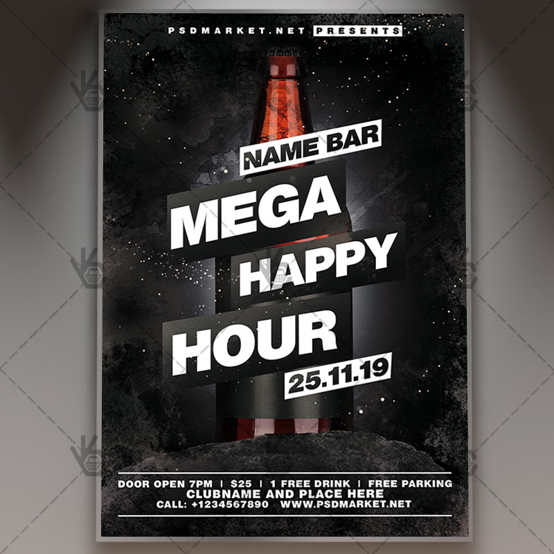 Mega Happy Hour Flyer is a simply modern flyer design by PSDmarket Team to be used with Photoshop CS3 and higher. Save your time and use it for business or for your clients! This can be use for Mega Happy Hour, Happy Hour Event, Best Happy Hour, Happy Hour, Beer Part, Birthday, Happy Hour Night, Karaore Night, Happy Hour, Karaore Party or Happy Night and others.