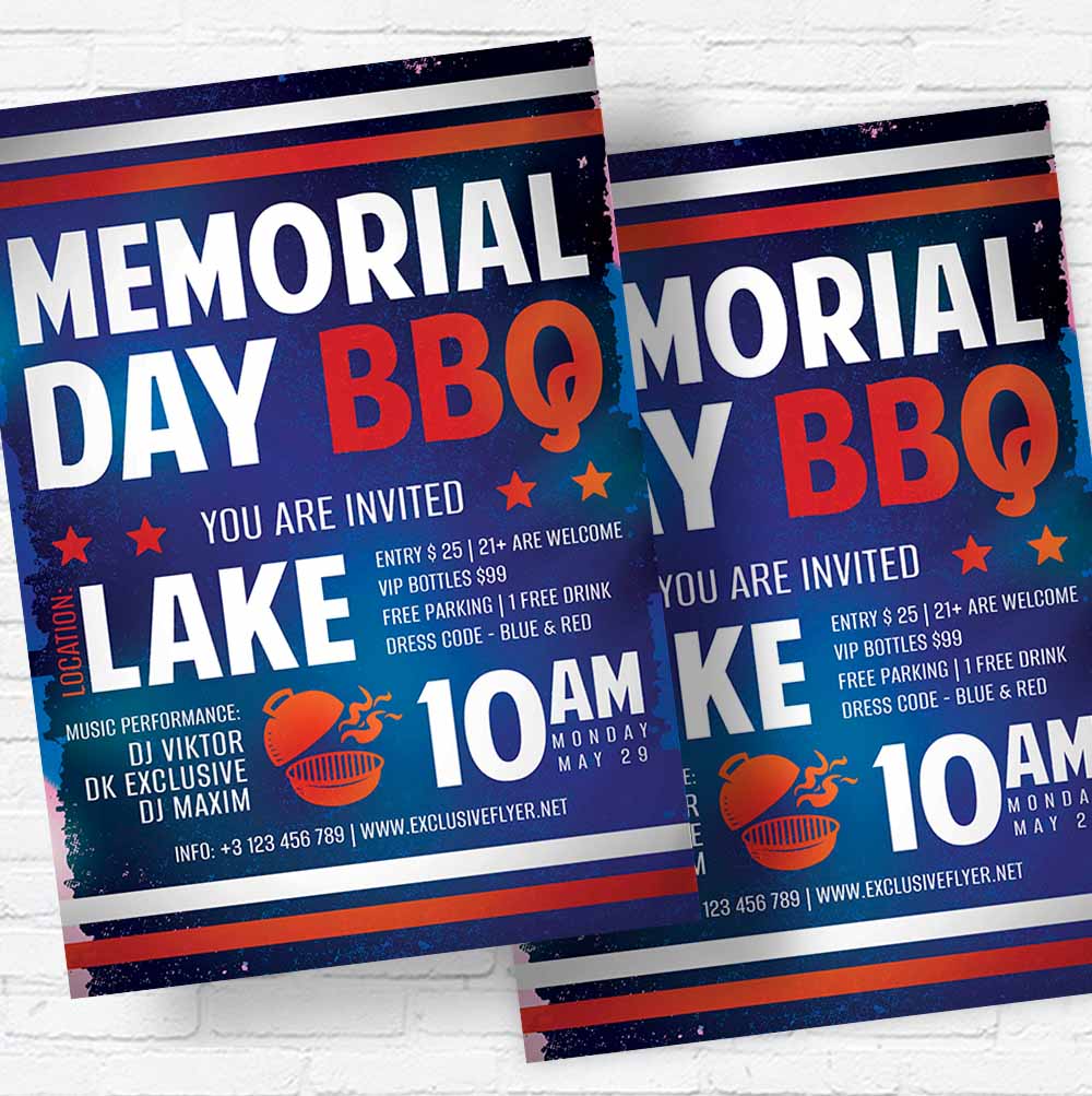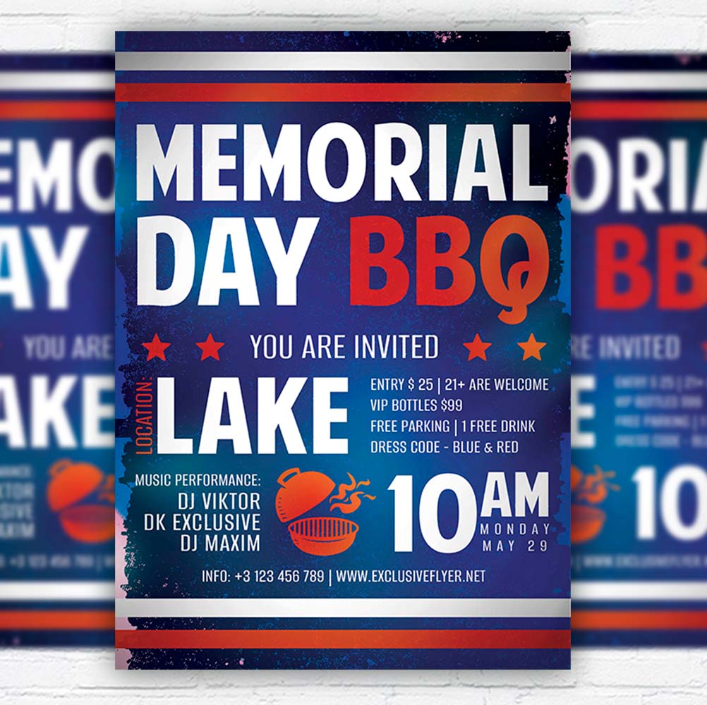 Memorial Day BBQ is an exclusive PSD flyer template for Adobe Photoshop designed by our best graphic designers to facilitate your task in promoting your business. This psd poster/flyer is the best choice for the Memorial Day Night, MLK Party, Labor Day Party or Veterans Day Party. With our readymade Memorial Day BBQ PSD Template flyer in psd format, you can invite your customers and guests to your event with a minimum of effort and time.