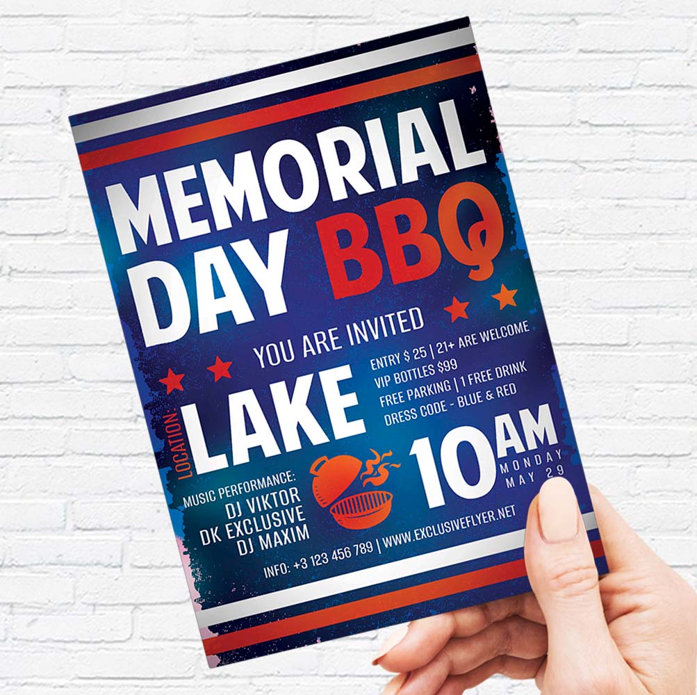 Memorial Day BBQ A5 Flyer PSD Template for Adobe Photoshop