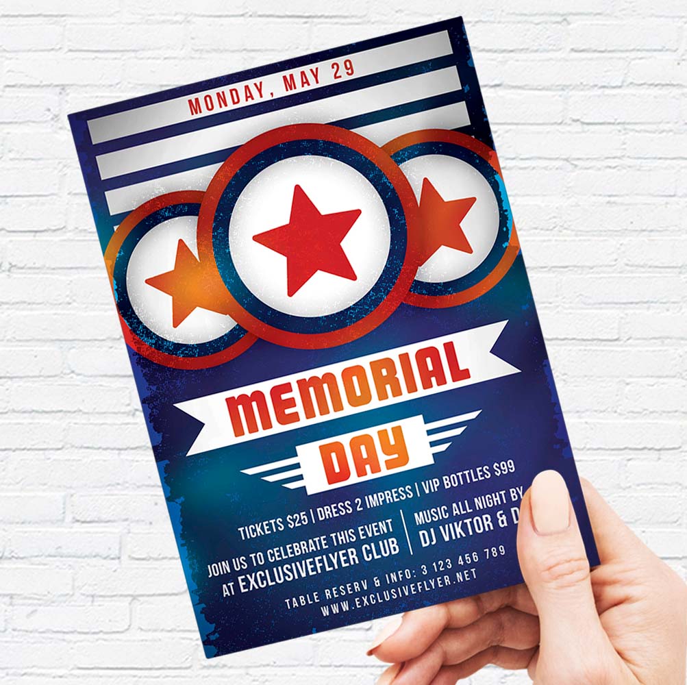 Memorial Day Party is an exclusive PSD flyer template for Adobe Photoshop designed by our best graphic designers to facilitate your task in promoting your business. This psd poster/flyer is the best choice for the Memorial Day Night, MLK Party, Labor Day Party or Veterans Day Party. With our readymade Memorial Day Party PSD Template flyer in psd format, you can invite your customers and guests to your event with a minimum of effort and time.