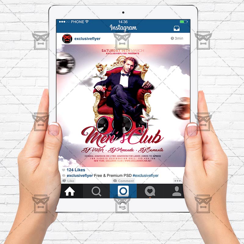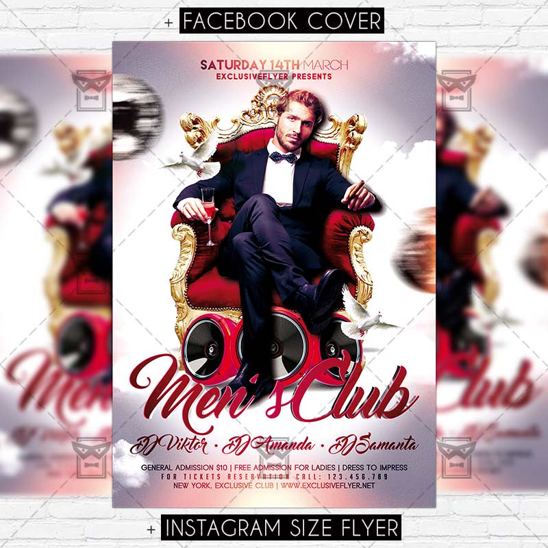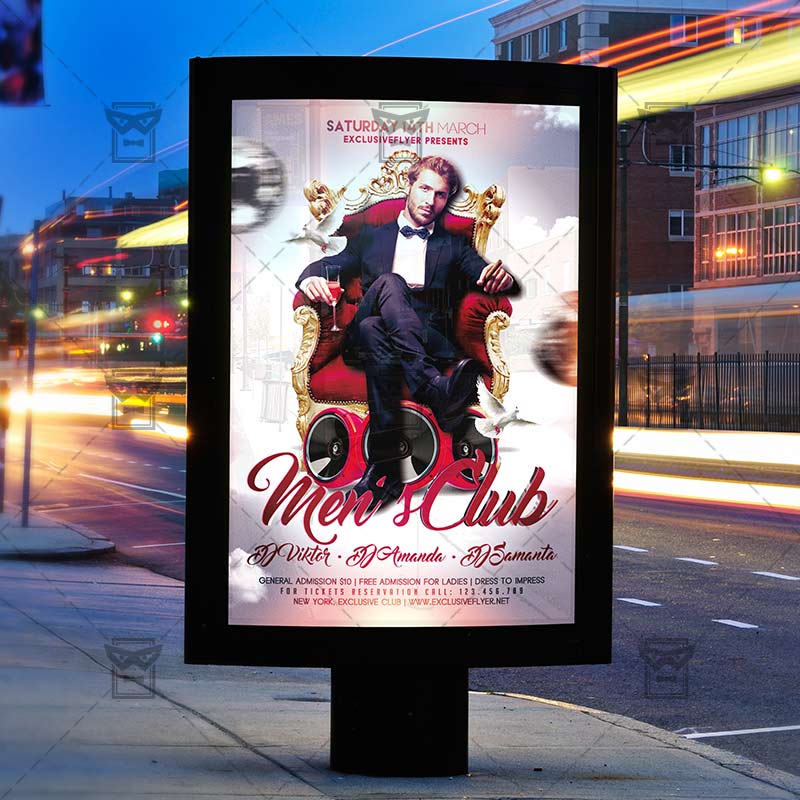 The Men’s Club Vol.2 is the exclusive Photoshop PSD flyer template designed by ExclusiveFlyer to promote your Men’s Club. This is a modern, stylish flyer and just be used for a Men’s Party, Sexy Booty Night, Hot Night etc. Dear customers! – you can also: Customize any flyers or Hire Us to create any unique product. Also, you can get unlimited access to all our templates. You can buy 1 month membership, 3 or 6 months membership or even 1 year membership plan and login on site, choose a design, click the button DOWNLOAD TEMPLATE and it’s yours. No hassle, no checkout! When you paid the template, you can find it in your personal account and of course you’ve got a message to your e-mail (maybe in spam) with link to download. Also, you can find all templates, which you buy, in your personal account! All of our flyers have a very good quality (300DPI). And it means that you just need to download one of them and make the necessary modifications such as replace the elements or choose the colors and start to invite your guests! You can order from us design of Banner Ad, Bi-Fold Brochure, Tri-Fold Brochure, Business Card, Logo, One-Sided Flyer, Two-sided Flyer or Postcard. All you need is to checkout and write us all information on our e-mail or skype. (order now). There are a lot of free flyer templates, free business card templates on our site! Also there are a lot of categories of flyers such as club flyers, seasonal flyers, sport flyers and also business flyers. You have a great choise on our site, so good luck! Don’t forget to follow our Facebook community, our page on Twitter, on Pinterest and on Tumblr and leave comments, cause we work for you! PSD is set up in 1275×1875 dimension (4” x 6” with 0,25” bleed). The PSD file is very well organised, with color coded groups and layers named appropriately. Remember, all stock images of models and other people used only for demonstration all charms of the flyer and don’t included in the download!