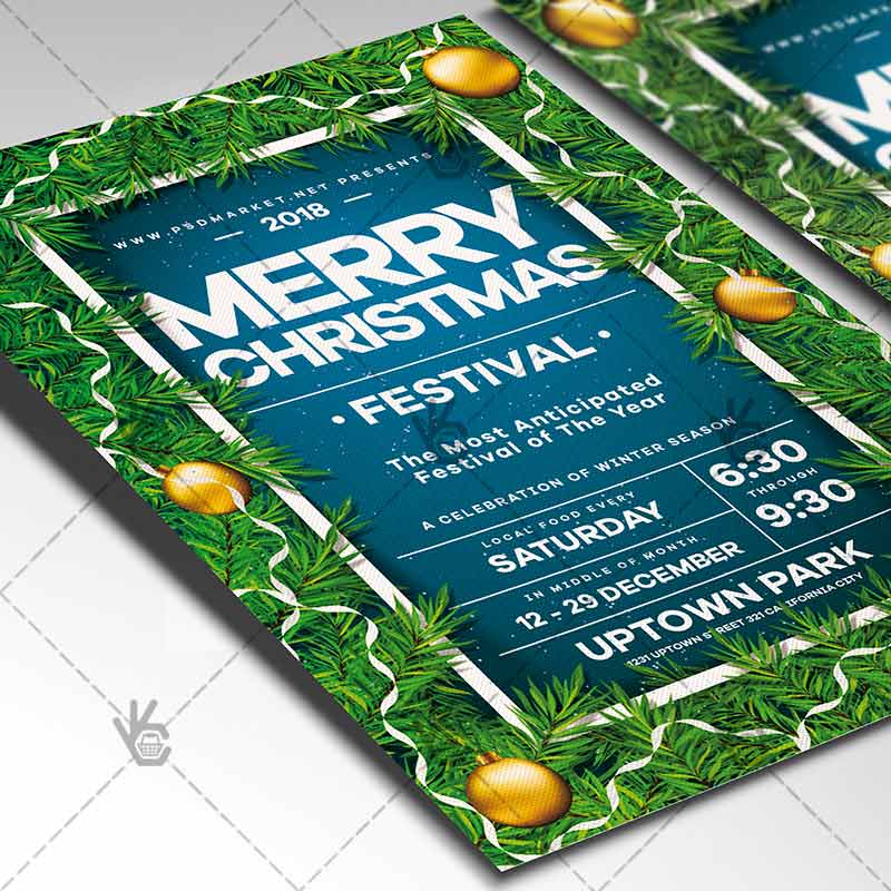 Merry Christmas Festival is a simply modern flyer design by PSDmarket Team to be used with Photoshop CS3 and higher. Save your time and use it for business or for your clients! This can be use for Merry Christmas Party, Christmas Night, New Year Party, Winter Party, Christmas Madness or Christmas Event and others.