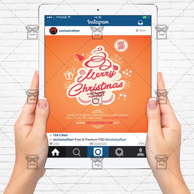 The Merry Christmas is the exclusive Photoshop PSD flyer template designed by ExclusiveFlyer to promote your Merry Christmas Party. This is a modern, stylish flyer and just be used for a Christmas Night, Christmas Evening etc. Dear customers! – you can also: Customize any flyers or Hire Us to create any unique product. Also, you can get unlimited access to all our templates. You can buy 1 month membership, 3 or 6 months membership or even 1 year membership plan and login on site, choose a design, click the button DOWNLOAD TEMPLATE and it’s yours. No hassle, no checkout! When you paid the template, you can find it in your personal account and of course you’ve got a message to your e-mail (maybe in spam) with link to download. Also, you can find all templates, which you buy, in your personal account! All of our flyers have a very good quality (300DPI). And it means that you just need to download one of them and make the necessary modifications such as replace the elements or choose the colors and start to invite your guests! You can order from us design of Banner Ad, Bi-Fold Brochure, Tri-Fold Brochure, Business Card, Logo, One-Sided Flyer, Two-sided Flyer or Postcard. All you need is to checkout and write us all information on our e-mail or skype. (order now). There are a lot of free flyer templates, free business card templates on our site! Also there are a lot of categories of flyers such as club flyers, seasonal flyers, sport flyers and also business flyers. You have a great choise on our site, so good luck! Don’t forget to follow our Facebook community, our page on Twitter, on Pinterest and on Tumblr and leave comments, cause we work for you! PSD is set up in 1275×1875 dimension (4” x 6” with 0,25” bleed). The PSD file is very well organised, with color coded groups and layers named appropriately. Remember, all stock images of models and other people used only for demonstration all charms of the flyer and don’t included in the download!