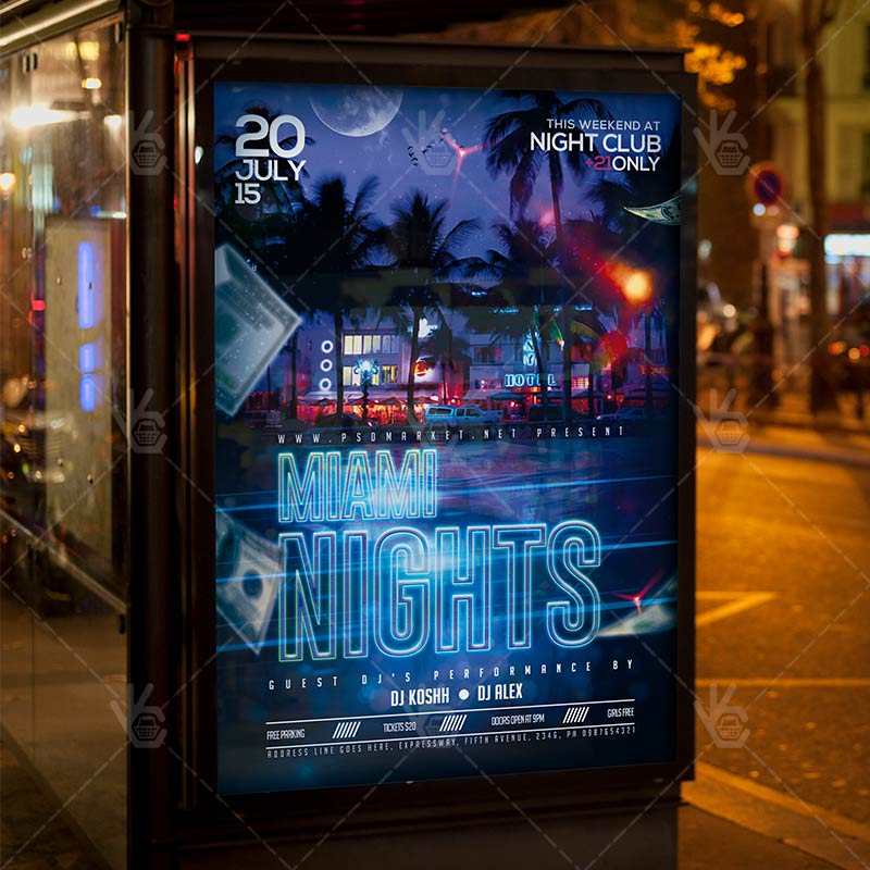 Miami Nights Flyer is a simply modern flyer design by PSDmarket Team to be used with Photoshop CS3 and higher. Save your time and use it for business or for your clients! This can be use for Miami Nights, Miami Party, Music Event, Music Week, Music Party, Music Night, Music Festival, Drum Fest, Music Fest Night, Music Party Festival, Drum Music Party and others.
