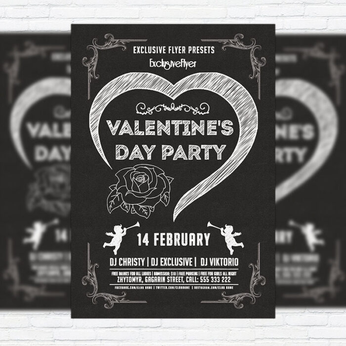 The Minimal Valentine’s Day Party is the exclusive Photoshop PSD flyer template designed by ExclusiveFlyer to promote your Minimal Valentine’s Day Party. This is a modern, stylish flyer and just be used for a Love Party or Valentine’s Night. Dear customers! – you can also: Customize any flyers or Hire Us to create any unique product. Also, you can get unlimited access to all our templates. You can buy 1 month membership, 3 or 6 months membership or even 1 year membership plan and login on site, choose a design, click the button DOWNLOAD TEMPLATE and it’s yours. No hassle, no checkout! When you paid the template, you can find it in your personal account and of course you’ve got a message to your e-mail (maybe in spam) with link to download. Also, you can find all templates, which you buy, in your personal account! All of our flyers have a very good quality (300DPI). And it means that you just need to download one of them and make the necessary modifications such as replace the elements or choose the colors and start to invite your guests! You can order from us design of Banner Ad, Bi-Fold Brochure, Tri-Fold Brochure, Business Card, Logo, One-Sided Flyer, Two-sided Flyer or Postcard. All you need is to checkout and write us all information on our e-mail or skype. (order now). There are a lot of free flyer templates, free business card templates on our site! Also there are a lot of categories of flyers such as club flyers, seasonal flyers, sport flyers and also business flyers. You have a great choise on our site, so good luck! Don’t forget to follow our Facebook community, our page on Twitter, on Pinterest and on Tumblr and leave comments, cause we work for you! PSD is set up in 1275×1875 dimension (4″×6″ with 0,25″ bleed). The PSD file is very well organised, with color coded groups and layers named appropriately. Remember, all stock images of models and other people used only for demonstration all charms of the flyer and don’t included in the download!