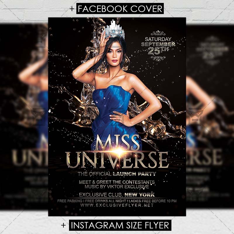 The Miss Universe is the exclusive Photoshop PSD flyer template designed by ExclusiveFlyer to promote your Miss Universe Launch Party. This is a modern, stylish flyer and just be used for Beauty Contest, Model Competition etc.