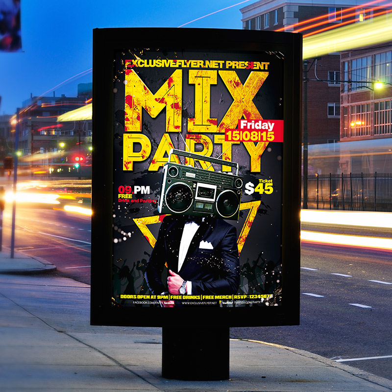 The Mix Party is the exclusive Photoshop PSD flyer template designed by ExclusiveFlyer to promote your Mix Party. This is a modern, stylish, black flyer and just be used for a Mix Tournament or Dance Party, or other Club Party. Dear customers! – you can also: Customize any flyers or Hire Us to create any unique product. Also, you can get unlimited access to all our templates. You can buy 1 month membership, 3 or 6 months membership or even 1 year membership plan and login on site, choose a design, click the button DOWNLOAD TEMPLATE and it’s yours. No hassle, no checkout! When you paid the template, you can find it in your personal account and of course you’ve got a message to your e-mail (maybe in spam) with link to download. Also, you can find all templates, which you buy, in your personal account! All of our flyers have a very good quality (300DPI). And it means that you just need to download one of them and make the necessary modifications such as replace the elements or choose the colors and start to invite your guests! You can order from us design of Banner Ad, Bi-Fold Brochure, Tri-Fold Brochure, Business Card, Logo, One-Sided Flyer, Two-sided Flyer or Postcard. All you need is to checkout and write us all information on our e-mail or skype. (order now). There are a lot of free flyer templates, free business card templates on our site! Also there are a lot of categories of flyers such as club flyers, seasonal flyers, sport flyers and also business flyers. You have a great choise on our site, so good luck! Don’t forget to follow our Facebook community, our page on Twitter, on Pinterest and on Tumblr and leave comments, cause we work for you! PSD is set up in 1275×1875 dimension (4″×6″ with 0,25″ bleed). The PSD file is very well organised, with color coded groups and layers named appropriately. Remember, all stock images of models and other people used only for demonstration all charms of the flyer and don’t included in the download!