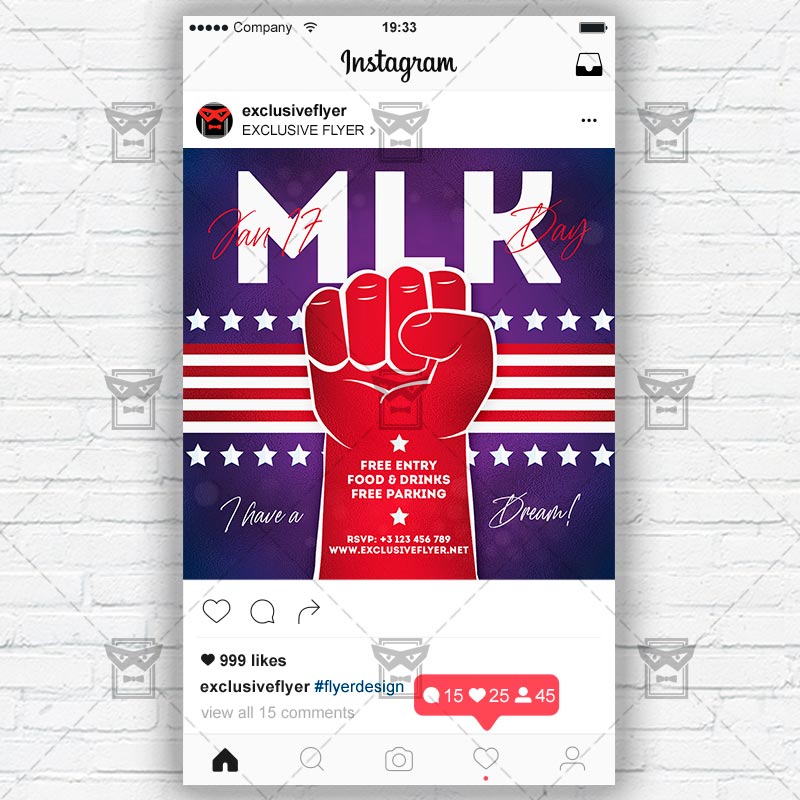 MLK Day Template an exclusive PSD flyer template for Adobe Photoshop designed by our best graphic designers to facilitate your task in promoting your business. With our readymade Club flyer in psd format you can invite you customers and guest to your event or to the best MLK Night, MLK Day Celebration, Martin Luther King Day, Martin Luther King Show or Martin Luther King JR Party in their lives.