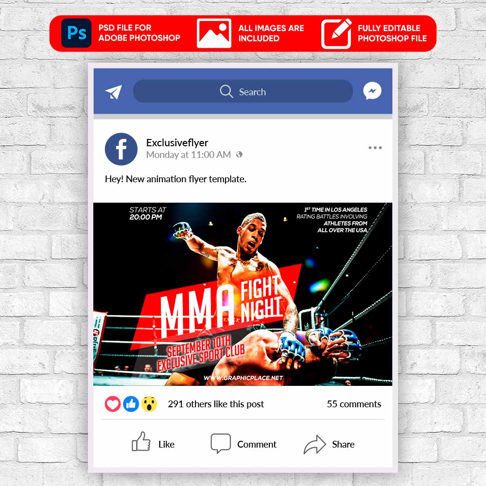 MMA Fight Animated Flyer PSD Template for Social Media Networks