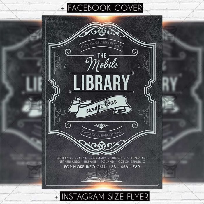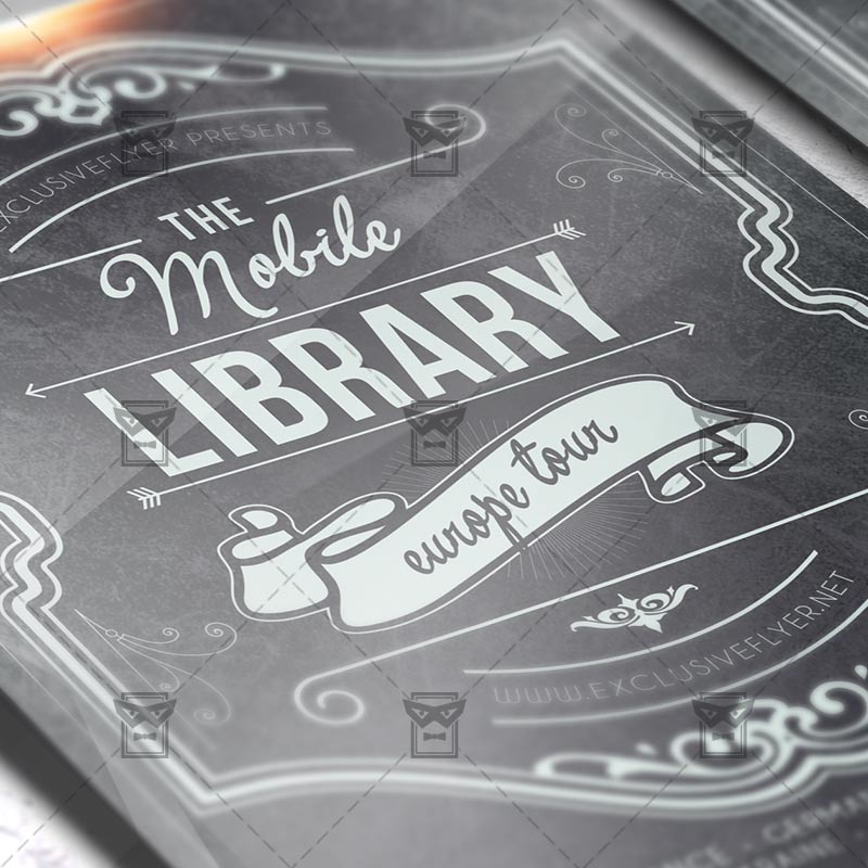 The Mobile Library is the exclusive Photoshop PSD flyer template designed by ExclusiveFlyer to promote your Mobile Library. This is a modern, stylish flyer and just be used for a Books Festival, Librarian Day etc. Dear customers! – you can also: Customize any flyers or Hire Us to create any unique product. Also, you can get unlimited access to all our templates. You can buy 1 month membership, 3 or 6 months membership or even 1 year membership plan and login on site, choose a design, click the button DOWNLOAD TEMPLATE and it’s yours. No hassle, no checkout! When you paid the template, you can find it in your personal account and of course you’ve got a message to your e-mail (maybe in spam) with link to download. Also, you can find all templates, which you buy, in your personal account! All of our flyers have a very good quality (300DPI). And it means that you just need to download one of them and make the necessary modifications such as replace the elements or choose the colors and start to invite your guests! You can order from us design of Banner Ad, Bi-Fold Brochure, Tri-Fold Brochure, Business Card, Logo, One-Sided Flyer, Two-sided Flyer or Postcard. All you need is to checkout and write us all information on our e-mail or skype. (order now). There are a lot of free flyer templates, free business card templates on our site! Also there are a lot of categories of flyers such as club flyers, seasonal flyers, sport flyers and also business flyers. You have a great choise on our site, so good luck! Don’t forget to follow our Facebook community, our page on Twitter, on Pinterest and on Tumblr and leave comments, cause we work for you! PSD is set up in 1275×1875 dimension (4” x 6” with 0,25” bleed). The PSD file is very well organised, with color coded groups and layers named appropriately. Remember, all stock images of models and other people used only for demonstration all charms of the flyer and don’t included in the download!