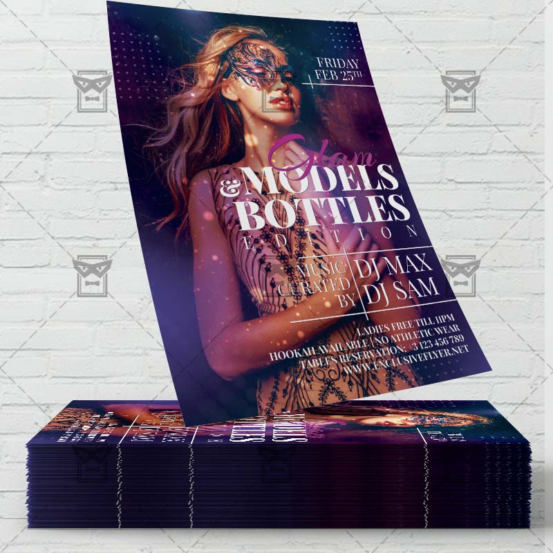 Models and Bottles Template an exclusive PSD flyer template for Adobe Photoshop designed by our best graphic designers to facilitate your task in promoting your business. This psd poster/flyer is the best choice for Club Night Prty, Dirty Party, Sexy Night, Ladies Night Out or Dj Battle Night. With our readymade Game flyer in psd format you can invite you customers and guest to your event with a minimum of efforts and time.