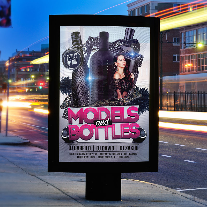 Models VS Bottles – Premium Flyer Template + Facebook Cover