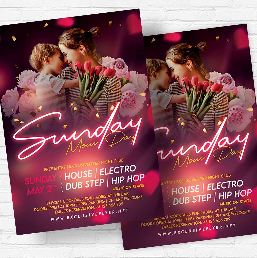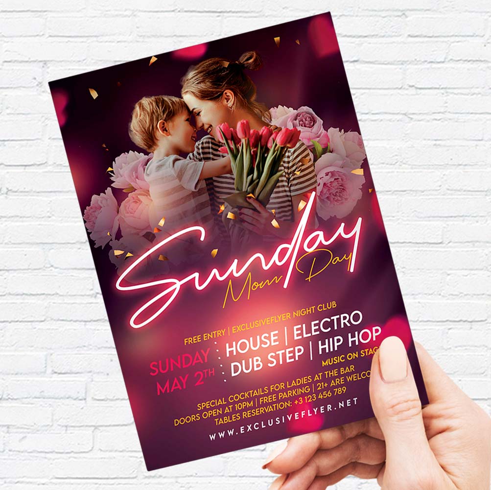 Mom Day Sunday A5 Flyer PSD Template for Adobe Photoshop