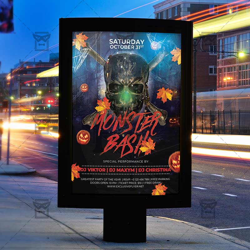 Monster Bash A5 Flyer Template for Adobe Photoshop