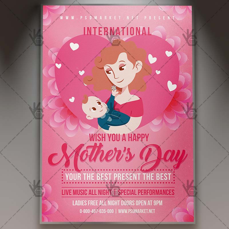 Mothers Day Flyer is a simply modern flyer design by PSDmarket Team to be used with Photoshop CS3 and higher. Save your time and use it for business or for your clients! This can be use for Mothers Day, Mom Day, Mothers Night, Mother Party, Mothers Day Brunch or Mothers Day Celebration and others.