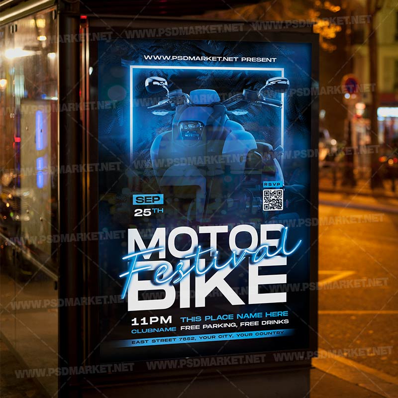 Motorbike Festival PSD Template is a simply modern flyer design by PSDmarket Team to be used with Photoshop CS3 and higher. Save your time and use it for business or for your clients! This can be use for Motorbike Festival, Moto Cross, Moto Cross Party, Moto Rally, Moto Festival, Moto Cross Night, Motor Club Event, Motorcycle Club Event, Motor Bike Event and others.