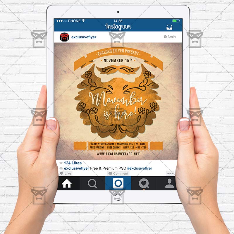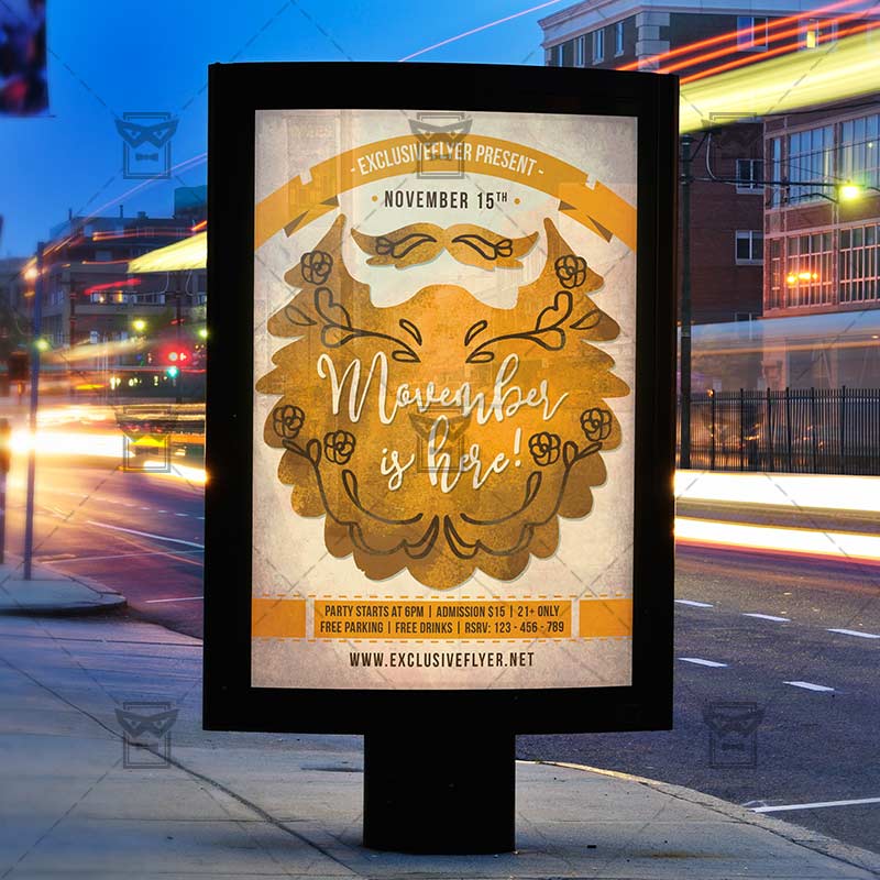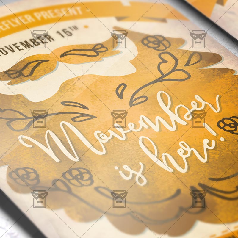 The Movember Is Here is the exclusive Photoshop PSD flyer template designed by ExclusiveFlyer to promote your Movember Is Here. This is a modern, stylish flyer and just be used for a Movember Night, Beard Party etc. Dear customers! – you can also: Customize any flyers or Hire Us to create any unique product. Also, you can get unlimited access to all our templates. You can buy 1 month membership, 3 or 6 months membership or even 1 year membership plan and login on site, choose a design, click the button DOWNLOAD TEMPLATE and it’s yours. No hassle, no checkout! When you paid the template, you can find it in your personal account and of course you’ve got a message to your e-mail (maybe in spam) with link to download. Also, you can find all templates, which you buy, in your personal account! All of our flyers have a very good quality (300DPI). And it means that you just need to download one of them and make the necessary modifications such as replace the elements or choose the colors and start to invite your guests! You can order from us design of Banner Ad, Bi-Fold Brochure, Tri-Fold Brochure, Business Card, Logo, One-Sided Flyer, Two-sided Flyer or Postcard. All you need is to checkout and write us all information on our e-mail or skype. (order now). There are a lot of free flyer templates, free business card templates on our site! Also there are a lot of categories of flyers such as club flyers, seasonal flyers, sport flyers and also business flyers. You have a great choise on our site, so good luck! Don’t forget to follow our Facebook community, our page on Twitter, on Pinterest and on Tumblr and leave comments, cause we work for you! PSD is set up in 1275×1875 dimension (4” x 6” with 0,25” bleed). The PSD file is very well organised, with color coded groups and layers named appropriately. Remember, all stock images of models and other people used only for demonstration all charms of the flyer and don’t included in the download!