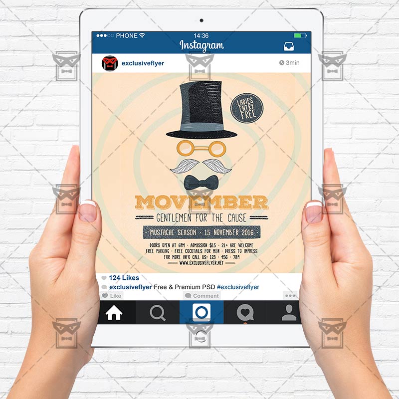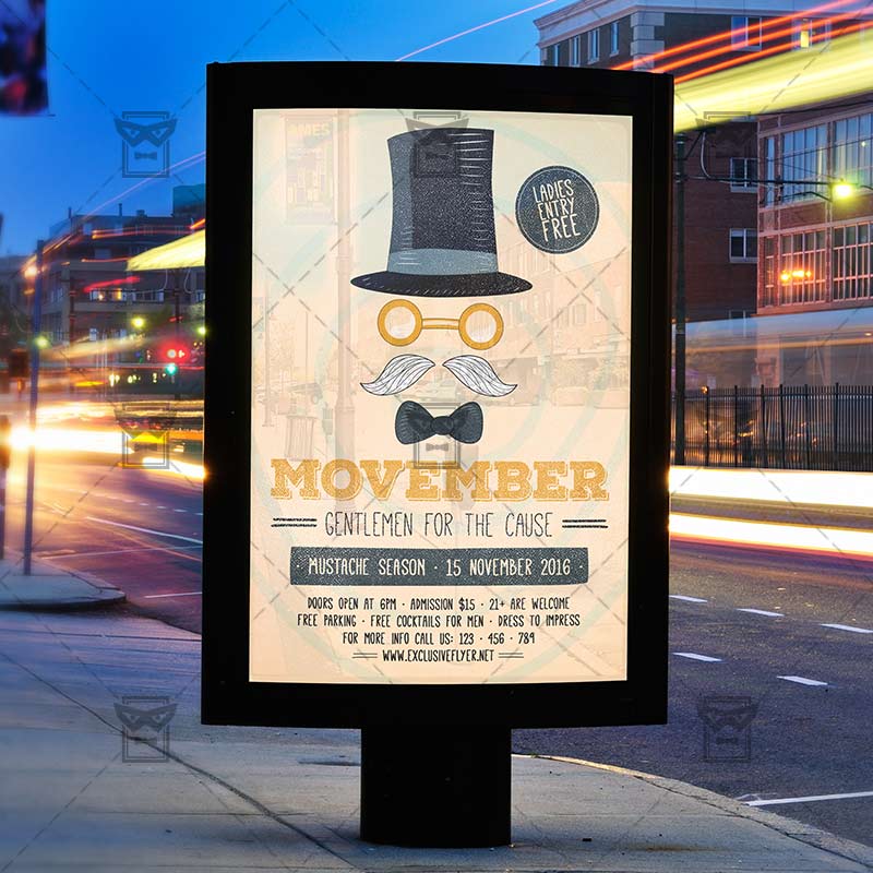 The Movember Party is the exclusive Photoshop PSD flyer template designed by ExclusiveFlyer to promote your Movember Party. This is a modern, stylish flyer and just be used for a Movember Night, Beard Party etc. Dear customers! – you can also: Customize any flyers or Hire Us to create any unique product. Also, you can get unlimited access to all our templates. You can buy 1 month membership, 3 or 6 months membership or even 1 year membership plan and login on site, choose a design, click the button DOWNLOAD TEMPLATE and it’s yours. No hassle, no checkout! When you paid the template, you can find it in your personal account and of course you’ve got a message to your e-mail (maybe in spam) with link to download. Also, you can find all templates, which you buy, in your personal account! All of our flyers have a very good quality (300DPI). And it means that you just need to download one of them and make the necessary modifications such as replace the elements or choose the colors and start to invite your guests! You can order from us design of Banner Ad, Bi-Fold Brochure, Tri-Fold Brochure, Business Card, Logo, One-Sided Flyer, Two-sided Flyer or Postcard. All you need is to checkout and write us all information on our e-mail or skype. (order now). There are a lot of free flyer templates, free business card templates on our site! Also there are a lot of categories of flyers such as club flyers, seasonal flyers, sport flyers and also business flyers. You have a great choise on our site, so good luck! Don’t forget to follow our Facebook community, our page on Twitter, on Pinterest and on Tumblr and leave comments, cause we work for you! PSD is set up in 1275×1875 dimension (4” x 6” with 0,25” bleed). The PSD file is very well organised, with color coded groups and layers named appropriately. Remember, all stock images of models and other people used only for demonstration all charms of the flyer and don’t included in the download!