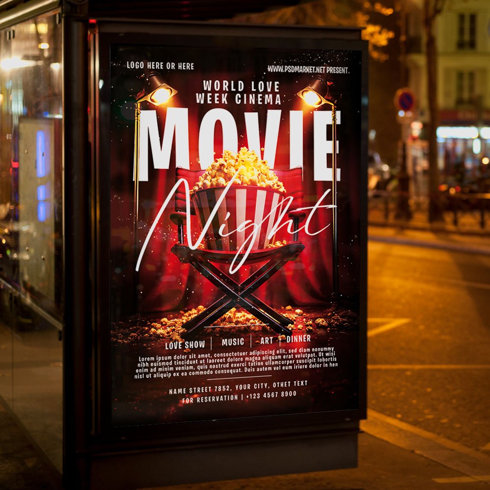 Movie Night 2026 Flyer PSD TemplateRoll out the red carpet and dim the lights for a cinematic experience like no other! Our **Movie Night 2026 Flyer PSD Template** is the perfect design solution for outdoor cinema clubs, boutique theaters, community centers, and private screening parties. As we move into 2026, themed movie marathons and romantic film nights are more popular than ever, and this professional PSD template captures that classic Hollywood magic with a modern twist. If you are looking to create an invitation that says **”The Ultimate 2026 Cinema Experience,” “Join Us Under the Stars,”** or **”A Night of Romantic Movie Magic,”** this template is your ticket to success. Expect a high-quality visual experience featuring 3D popcorn buckets, film reel motifs, theater curtains, and elegant typography that highlights your feature film for the year 2026. The color palette—usually a sophisticated mix of deep midnight blues, classic gold accents, and vibrant red velvet tones—perfectly sets the stage for a professional **Movie Night 2026**. The **Movie Night 2026 Flyer PSD Template** offers a highly organized and user-friendly layout, ensuring that your movie title, screening time, and venue details are easy to read at a glance. As a fully editable Photoshop file, it provides total creative freedom. You can effortlessly update the text layers to include your specific movie selection, the venue address, and ticket prices, or highlight special features like **free popcorn and drinks, VIP lounge seating, live post-film discussions,** or **interactive trivia games**. Whether you are planning a high-end Valentine’s Day romantic comedy screening or a large-scale sci-fi festival, this template’s modular design makes customization quick and effortless. Because it is a high-resolution PSD, you can adjust the atmospheric lighting, modify background textures, and fine-tune the color balance to ensure your **Movie Night 2026** promotion looks as professional as a major studio premiere. Designed for a multi-channel marketing world, the **Movie Night 2026 Flyer PSD Template** is 100% print-ready and expertly optimized for all digital social platforms. You can produce high-quality physical posters and handbills for local community boards while also exporting perfectly sized versions for Instagram, Facebook, and private digital invites. This ensures your cinematic event reaches a wide, enthusiastic audience and builds the necessary excitement for a “sold-out” house. By choosing this distinctive and professional flyer template, you aren’t just announcing a film; you’re promising an immersive entertainment experience. Make your **”Movie Night 2026″** the essential destination for film lovers this season. Download this template today and start your professional 2026 promotion with cinematic style! — Features of the Movie Night 2026 Flyer PSD Template