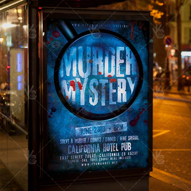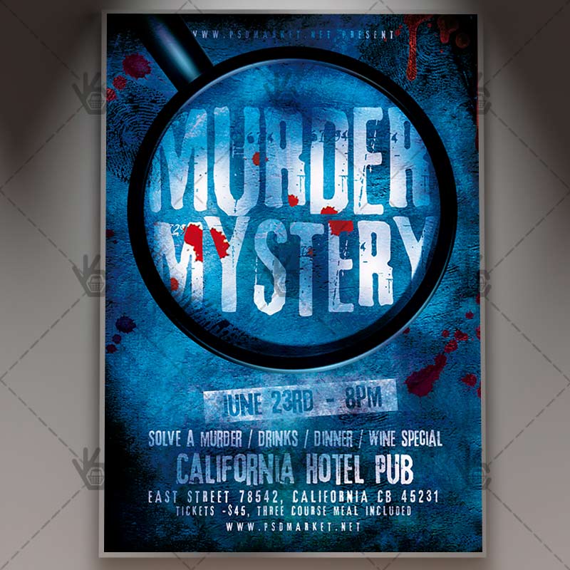 Murder Mystery is a simply modern flyer design by PSDmarket Team to be used with Photoshop CS3 and higher. Save your time and use it for business or for your clients! This can be use for Murder Mystery Party, Murder Mystery Night, Murder Mystery Dinner, Murder Mystery Evening, Murder Mystery Quilt, Murder Mystery Adventure, Murder Mystery Theatre, Murder Mystery Event and others.