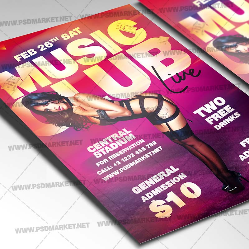 Music Club Template Flyer PSD is a simply modern flyer design by PSDmarket Team to be used with Adobe Photoshop CS3 and higher. Save your time and use it for business or for your clients! This can be use for Music Club, Party Night, Party Friday, World Party Day, Dj Sound, Dj Club Event, Dj Party, Dj Night, Dj Club Party, Club Party, Online Party, Online Stream Party, Live Party, House Party, Home Night, Party Night, Rave Club Party, Rave Dj, Dj Battle and others.