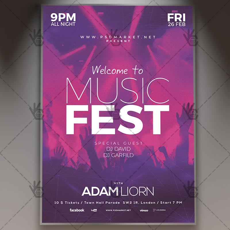 Music Fest is a simply modern flyer design by PSDmarket Team to be used with Photoshop CS3 and higher. Save your time and use it for business or for your clients! This can be use for Music Festival, Drum Fest, Music Fest Night, Music Party Festival, Drum Music Party and others.