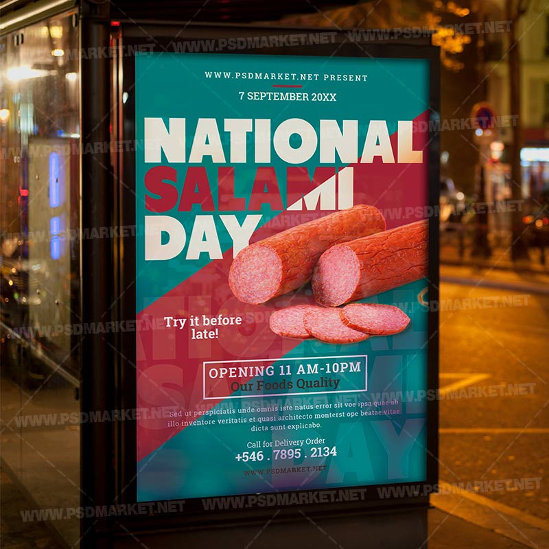 National Salami Day Flyer is a simply modern flyer design by PSDmarket Team to be used with Photoshop CS3 and higher. Save your time and use it for business or for your clients! This can be use for National Salami Day, Salami Day, Salami Partry, Salami Night, Salami Fest, Salami Festival, Salami Fair, Salami Shop, Cook Classes, Cooking Coaching Classes, Chief Cooking Lessons , Chef Cookout, Cooking Lessons, Culinary Class or Chef Class and others.
