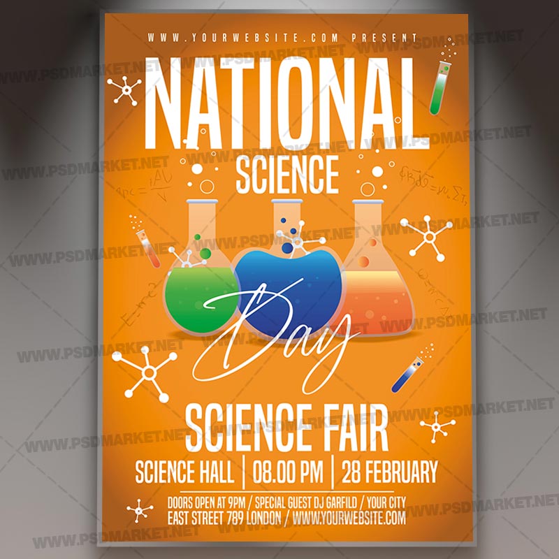 National Science Day Card Printable Template Flyer PSD is a simply modern flyer design by PSDmarket Team to be used with Photoshop CS3 and higher. Save your time and use it for business or for your clients! This can be use for National Science Day, National Science Day 2023, National Science Day Party, National Science Day Celebration, National Science Day Event, National Science Day 2024 and others.