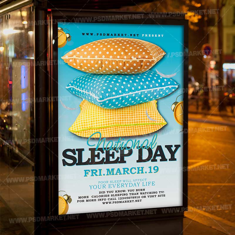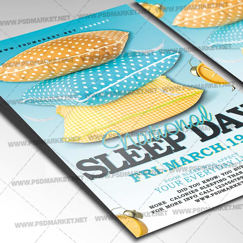 National Sleep Day Template Flyer PSD is a simply modern flyer design by PSDmarket Team to be used with Photoshop CS3 and higher. Save your time and use it for business or for your clients! This can be use for World Sleep Day, World Sleep Day Event, World Sleep, National Sleep Day, World Sleep Fridays, World Sleep Party, World Sleep Night, World Sleep Party Night, International Sleep Day, International Sleep Day Event, National Sleep Day, Sleep Day Festival, Sleep Day Club Party, Sleep Day Fest and others.