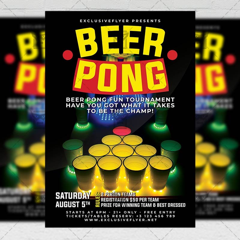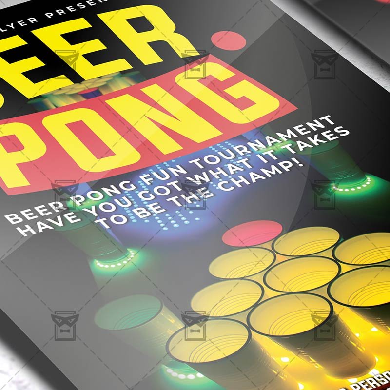 Neon Beer Pong A5 Flyer Template for Adobe Photoshop