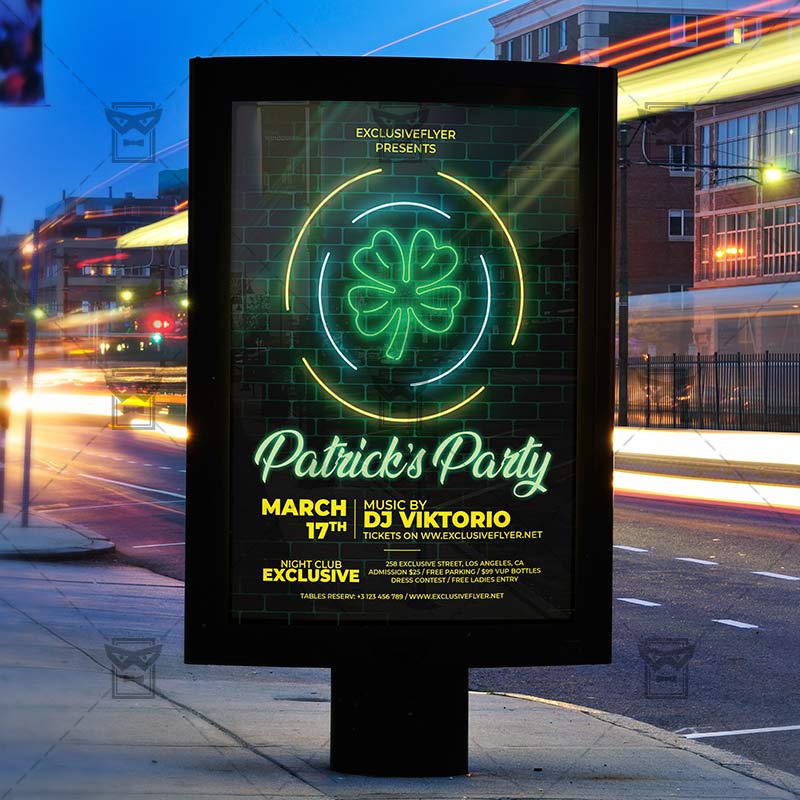 Neon St. Patrick’s Party Template for Adobe Photoshop
