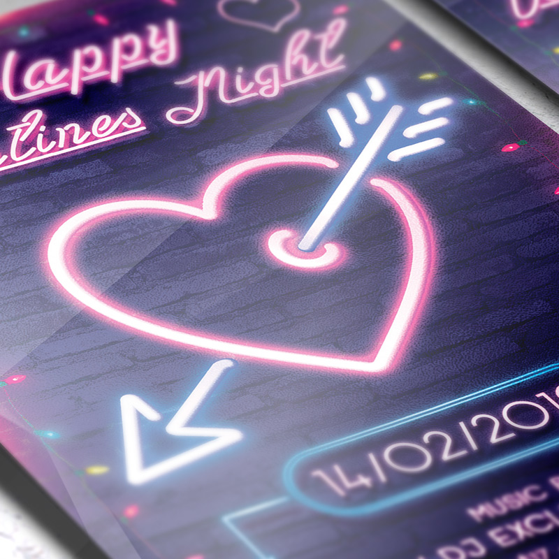 Neon Valentines Night – Premium Flyer Template + Facebook Cover