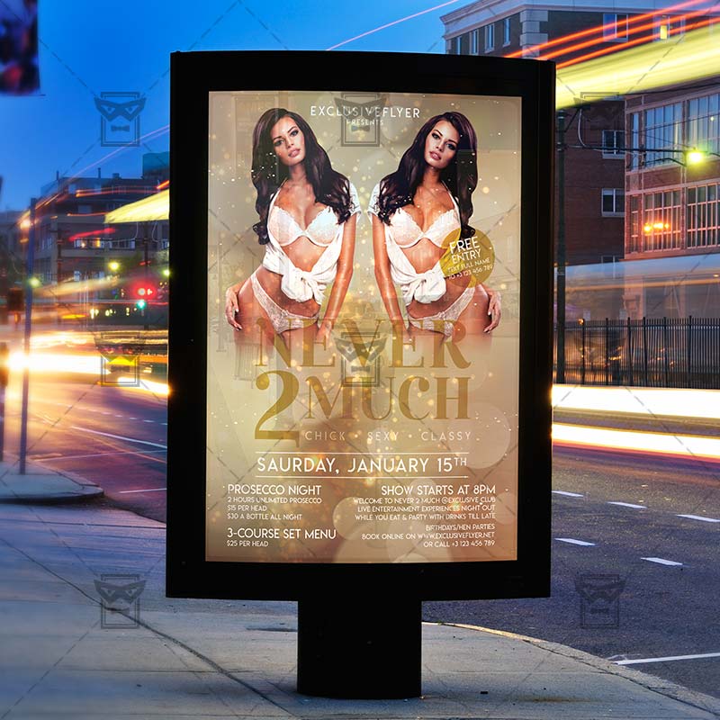 Never 2 Much Flyer – Club PSD Template + Instagram Ready Size