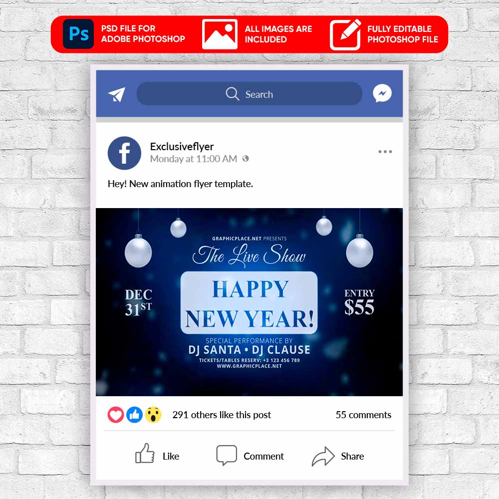 New Year Party Animated Flyer PSD Template for Social Media Networks