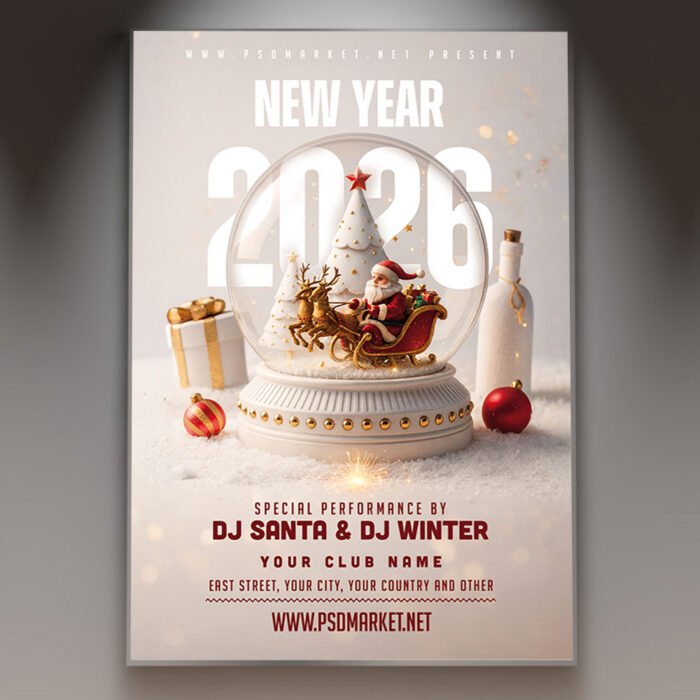 NYE 2026 Party Flyer PSD TemplateMake your New Year’s Eve bash the most anticipated event! Our vibrant and celebratory **NYE 2026 Party Flyer PSD Template** is the ideal design tool for promoting any New Year’s Eve celebration focused on welcoming the year 2026—from a lively private house party or bar event to a large community countdown or club night. This professional PSD template offers full customizability to ensure your event looks as exciting, spirited, and unforgettable as the last night of the year should be. If you’re looking to create an irresistible invitation that screams “**Celebrate 2026!**,” “**The Biggest Party of the Year**,” and “**Countdown to Midnight**,” this flyer template is engineered to draw a huge, energetic crowd ready to party. Expect to see striking visuals, often incorporating classic NYE elements like popping champagne, festive confetti, bright lights, bold, celebratory typography prominently featuring ‘2026’, and a festive, high-contrast color scheme (typically featuring gold, silver, deep black, and vibrant red or blue accents) that perfectly captures the thrilling and optimistic spirit of an **NYE 2026 Party**. This template is all about setting an exciting, high-energy, and memorable mood, making your venue the essential destination to ring in the new year. The **NYE 2026 Party Flyer PSD Template** offers a highly adaptable and professional layout (as a PSD file), ensuring you can clearly communicate all the essential details of your grand celebration while perfectly maintaining its party atmosphere. You can easily customize the text fields to include the specific date and time of your event (December 31st), the venue location, any special entry requirements (e.g., ticket purchase details, dress code: “Wear Your Sparkle,” “Formal Attire”), and information about featured entertainment (e.g., a **DJ or band**, a special midnight performance, a firework viewing area), details on the **champagne toast** at 12:00 AM, **drink specials**, or information about a photo contest, all presented in a clear and appealing way. Add an enticing description of what attendees can expect, perhaps highlighting opportunities for a special **VIP section**, a dedicated dance floor, or simply celebrating with friends as the clock strikes midnight. And of course, include clear contact information or prominent social media handles for further engagement and ticket sales. Being a PSD template, it offers exciting options to incorporate additional dynamic graphics like glowing effects, abstract patterns, or glittering textures, or to adjust the impactful color palette to perfectly match your brand’s aesthetic or the event’s specific vibe. This lets you create a truly unique and memorable promotional piece that looks as luxurious and exciting as your New Year’s celebration feels. Engineered for maximum reach, the **NYE 2026 Party Flyer PSD Template** is designed to be both print-ready for stunning physical distribution and seamlessly optimized for digital sharing. This ensures your exciting invitation reaches a wide and enthusiastic audience. Create eye-catching physical flyers to distribute at high-traffic areas, and effortlessly share the flyer digitally through various social media channels with engaging captions that highlight the party fun, email announcements that build anticipation, and online event listings that attract revelers and guests. This dual functionality helps to maximize visibility and create significant buzz around your NYE 2026 Party. By utilizing this distinctive and attention-grabbing flyer template, you’re not just announcing a party; you’re creating an invitation that broadcasts pure, thrilling celebration and promises an experience filled with great music, high energy, and unforgettable memories, making your “**NYE 2026 Party**” the essential destination to welcome the future. Grab this template today and secure your spot as the top event of 2026! — Features of the NYE 2026 Party Flyer PSD Template