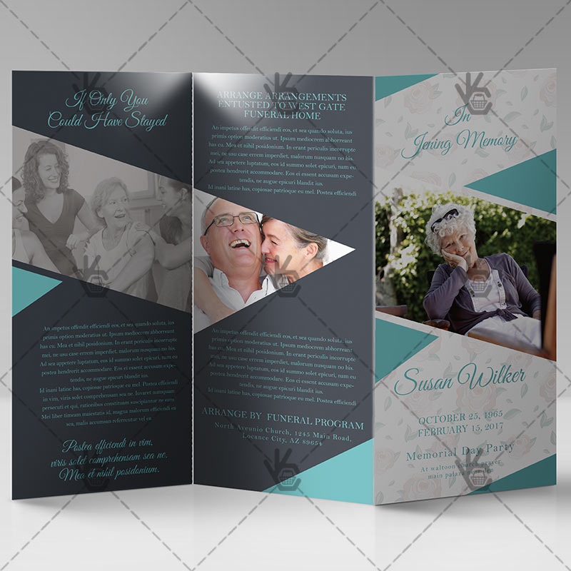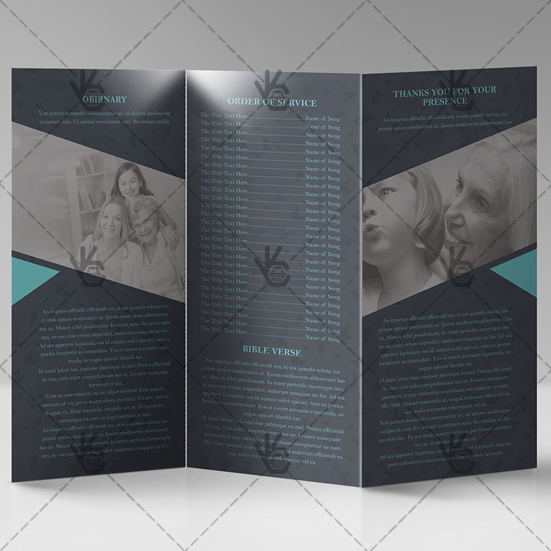 Obituary Program is a simply modern tri-fold brochure design by PSDmarket Team to be used with Photoshop CS3 and higher. Save your time and use it for business or for your clients! This can be use for Memorial Program, Funeral Program, Obituary Program, Church Event, Pastor Anniversary or Hope Pastor Appreciation and others.