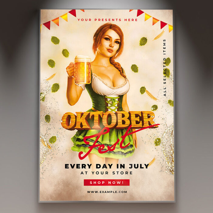 Oktoberfest Flyer TemplateRaise your steins and celebrate in true Bavarian style with our festive **Oktoberfest Flyer Template**! This authentic and lively design is perfect for promoting beer festivals, themed parties, pub events, or any celebration centered around beer, food, and German traditions. If you’re looking to create an irresistible invitation that screams “prost!,” “lager and laughs,” and “a festival of fun,” this flyer template is engineered to draw a massive and enthusiastic crowd. Expect to see striking visuals, often incorporating classic German elements like beer steins overflowing with golden beer, traditional Bavarian attire (Lederhosen and Dirndls), rustic wood textures, and bold, festive typography that captures the communal and celebratory spirit of Oktoberfest. This template is all about setting an immersive and high-energy mood, making your “Oktoberfest” the ultimate destination for an epic gathering! The **Oktoberfest Flyer Template** offers a highly adaptable and professional layout, ensuring you can clearly communicate all the essential details of your event while perfectly maintaining its rustic and inviting spirit. You can easily customize the text fields to include the specific date and time of your festival, the lively venue location, any special entry requirements or ticket tiers, and information about featured beer selections (e.g., local brews, German imports), live entertainment (e.g., a Polka band), or enticing food specials (e.g., pretzels, bratwurst), all presented in a clear and appealing way. Add an enticing description of what attendees can expect, perhaps highlighting opportunities for stein-holding contests, enjoying traditional folk music, or simply mingling in a festive beer-hall atmosphere. Detail any exciting features like a designated photo booth with Bavarian props, special discounts for those in costume, or a family-friendly section. And of course, include clear contact information or prominent social media handles for further engagement and ticket sales. Many templates also provide exciting options to incorporate additional dynamic graphics like subtle light effects, decorative floral patterns, or rustic banners, or to adjust the impactful color palette (often deep blues and rich golds, with hints of red and white) to perfectly match your brand’s aesthetic or the event’s specific German theme. This lets you create a truly unique and memorable promotional piece that looks as authentic and exciting as your event feels. Engineered for maximum reach, the **Oktoberfest Flyer Template** is designed to be both print-ready for stunning physical distribution and seamlessly optimized for digital sharing. This ensures your exciting invitation reaches a wide and enthusiastic audience. Create eye-catching physical flyers to distribute at pubs, breweries, community centers, or through local food and drink clubs. Effortlessly share the flyer digitally through various social media channels with engaging captions that highlight the night’s energy, email announcements that build anticipation, and online event listings that attract beer enthusiasts, foodies, and anyone looking for a great time. This dual functionality helps to maximize visibility and create significant buzz around your Oktoberfest. By utilizing this distinctive and attention-grabbing flyer template, you’re not just announcing a party; you’re creating an invitation that broadcasts pure festive joy and promises an experience filled with great brews, delicious food, and unforgettable moments, making your “Oktoberfest” the ultimate destination for an epic gathering. Grab this template today and prepare to celebrate in style! — Features of the Oktoberfest Flyer Template